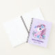 Spiral notebook with an adorable image of a sweet baby unicorn head portrait. A gentle butterfly visiting, fluttering near her nose. A bouquet of flowers around her neck complete this very cute design.
