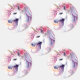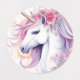 Cute watercolor unicorn with pink flowers, floral decorations.