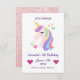 Cute Magical Unicorn & Hearts Birthday Invitation