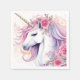 Cute watercolor unicorn with pink flowers, floral decorations.