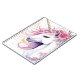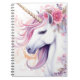 Cute watercolor unicorn with pink flowers, floral decorations.