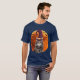 I give wanted to give this a 4 instead of a 5 because these Basic DARK T0shirts run unexpectedly SLIM or Narrow. Which is great if you do not have a potbelly, but I have a paunch. It isn't the shirt's fault that I've got a beer belly. The design and shirt itself is a quality cotton shirt. The color is more of a deep purple, but still a very pretty color. The Basic DARK T-shirts run a bit SLIMMER than the Basic Ts. The neck is a fraction narrower (or seems to be narrower) also. I'm a paunchy middle-aged woman and my neck is 12 inches (31cm) thick and the neckline fell about the same as in the photo of the man, and I had the desire to tug it a bit. So if you're a thick necked man or like loose shirts, be aware these are slimmer shirts. Once I get rid of my lockdown paunch it'll look great. The shirt washed well in cold water with no apparent bleeding. We don't have a dryer, so it hung dry. Did not shrink. Love the colors and the design. The design looks smaller on my shirt than it does on the model on-line. But still, it looks good on the shirt. The printing looks as it does on the model, just the size seems fractionally smaller. Washed garment in cold water, hung dry and design appeared unaffected.