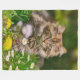 A young lovely brown tabby Maine Coon kitten sitting curiously in a flowery meadow in spring. A cute coonie cat photo taken by Katho Menden. This soft and cozy fleece blanket is a gift idea for cat lovers.