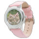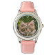 A young lovely brown tabby Maine Coon kitten sitting curiously in a flowery meadow in spring. A cute coonie cat photo taken by Katho Menden. This girls wrist watch with dial-plate is a gift idea for cat lovers.
