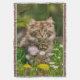 Cute Maine Coon Kitten Cat Sitting in Flowers Throw Blanket