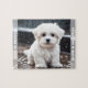 Cute Maltese Dog Puppy Fall Rain Custom Name Jigsaw Puzzle