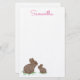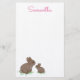 What cute, realistically painted bunnies with pink noses sitting in a patch of clover on this stationery. Personalise it with the provided template with your name or phrase.