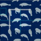 Cute fabric patterned with adorable manatees, on a navy blue background. You can customise and change the background colour to whatever suits your project.