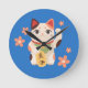 Cute Maneki Neko Lucky Cat Round Clock