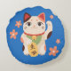 Bring luck and joy into your home with this adorable Japanese Maneki Neko round pillow. Featuring one large hand-drawn lucky cat, it adds charm and positivity to any cozy space.