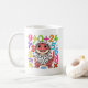 Cute maths dinosaur mug with colourful numbers and symbols.