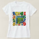 This colourful graphic T-shirt features a friendly calculator with