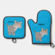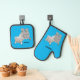 Cute mean bobcat lynx cartoon oven mitt & pot holder set