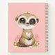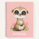 Cute baby meerkat and pink flowers on pink background. Meerkat symbolise family values, awareness and good fortune.