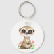 Cute baby meerkat and pink flowers on white background. Sweet present for kids and adults. Meerkat symbolise family values and good fortune.