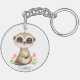 Cute baby meerkat and pink flowers on white background. Sweet present for kids and adults. Meerkat symbolise family values and good fortune.