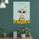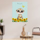 Cute baby meerkat, sunflowers and butterfly Blossom Poster. Text can be personalised. Meerkats symbolise family values, awareness and good fortune.