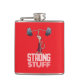 A funny meerkat weightlifter on a vinyl wrapped flask. Use "Personalise this template" to tweak the "STRONG STUFF" text and create a unique, customised gift. An accessory for someone who enjoys a shot or a tot of something potent, featuring a cute cartoon of a skinny meerkat in big shorts, smiling as he effortlessly lifts a huge barbell with one finger. For fans of booze, weightlifting, meerkats and/or working out.