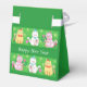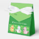 This festive gift favour box features a cute retro image of three cartoon Christmas cats in various colours on a Holiday green background. The text says, in white, "Meowy Christmas", and on the back "Happy New Year" but you may customise it to anything you'd like. There is also text on the flap that you may customise. Make it say whatever you'd like. Festive, unique, and colourful! Anyone who loves cats will love it!