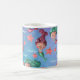 Cute Mermaid. Cute little mermaid girl with adorable smiled face. She is a little bit shy (it’s easy to notice that. Just look at her blushed cheeks). She is the beauty of ocean kingdoms. With her dark pink hair, she can easily win any beauty contest of underwater creatures. This mermaid illustration available on many Zazzle products is the best ocean related gift for anybody.