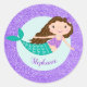 Cute Mermaid Purple Glitter Personalised Classic Round Sticker