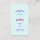 A vertical business card with an adorable illustration. Designed with a pretty mermaid girl riding a happy dolphin. A little jellyfish friend accompanies them. Decorated with little splatters of faux gold glitter. Light blue background.
