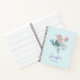 Spiral notebook with an adorable illustration. Designed with a pretty mermaid girl riding a happy dolphin. A little jellyfish friend accompanies them. Decorated with little splatters of faux gold glitter. Light blue background with faded pink polka dots.