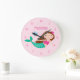 Cute Mermaid Whimsical Pink Personalised Large Clock