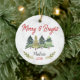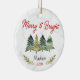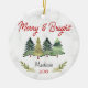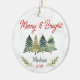 Cute merry and bright Christmas trees green red Ceramic ornament. It features cute trees and Christmas greenery and the back is filled with cool green baffalo plaid pattern. A wonderful keepsake gift for any family member, friend or coworker. Personalise it with your specific information and date.