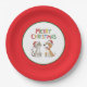 Cute Merry Christmas Cat and Dog with Santa Hats Paper Plate