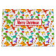 A cute cartoon Dinosaur Christmas Gift Bag featuring numerous colourful cartoon dinosaurs such as T rex - Tyrannosaurus Rex, Pterodactyl and Triceratops as well as decorated fir trees, candy canes and wrapped gifts . A fun xmas gift bag to hold and present the holiday season gifts for young babies and children. Perfect for dinosaur loving kids ( and adults!). Bright and fun with the writing being in a fun decorative Christmas font. Customise with happy holidays or any other title or personalise with a name to make this extra special Gift bag. Merry Christmas