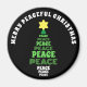 This cute magnet features a festive Christmas tree with the word peace and customisable greeting.