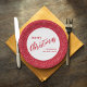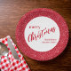 This design features a Christmas holiday calligraphy script paper plate with a merry Christmas cute typography, a simple minimalist minimal, cute simple calligraphy script, stylish trendy typography lettering, stylish trendy classic classy timeless, festive minimalist minimal traditional, festive holiday red and white, a creative simplistic elegant elegance, holiday party disposable paper supplies