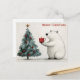 Send Merry Christmas greetings to your family and friends this year with this Xmas postcard featuring a cute illustration of a white polar bear with a Christmas tree and a candle!