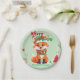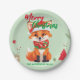 Cute merry Christmas red fox Santa Scarf holiday Paper Plate