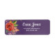 Cute metallic purple / violet return address label with a beautiful red flower in the corner and white text.