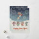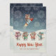 Celebrate the joy of the season with this adorable watercolor Happy New Year card featuring cheerful mice in colorful knitted hats and scarves watching fireworks in a snowy winter landscape. The front shows a playful mouse soaring into the night sky on a rocket while the others cheer below, capturing the fun and excitement of New Year celebrations. Personalize the text with your own “Happy New Year” message, “With love,” and family name for a heartfelt touch. The back features the same festive scene with the mouse on the rocket and sparkling fireworks for a charming finish. The boho watercolor style adds cozy winter warmth and whimsical woodland charm, perfect for families, kids, and anyone who loves cute animals and cheerful holiday art. Part of a collection with matching party supplies.