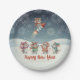 Serve up New Year fun with these adorable watercolor paper plates featuring cheerful mice in colorful knitted hats and scarves watching fireworks in a snowy winter scene. A playful mouse soars into the night sky on a rocket while the others cheer below, bringing joy and excitement to your celebration. The text “Happy New Year” is customizable, allowing you to add a personal festive touch. The charming boho watercolor style adds cozy winter warmth and whimsical woodland charm to your holiday table. Perfect for families, kids, and anyone who loves cute animals and cheerful winter art. Part of a matching collection with cards and party supplies.