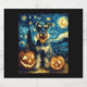 Cute Miniature Schnauzer Dog Halloween Jack O Lantern Pumpkin Face Starry Night Van Gogh Style