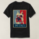 I give wanted to give this a 4 instead of a 5 because these Basic DARK T0shirts run unexpectedly SLIM or Narrow. Which is great if you do not have a potbelly, but I have a paunch. It isn't the shirt's fault that I've got a beer belly. The design and shirt itself is a quality cotton shirt. The color is more of a deep purple, but still a very pretty color. The Basic DARK T-shirts run a bit SLIMMER than the Basic Ts. The neck is a fraction narrower (or seems to be narrower) also. I'm a paunchy middle-aged woman and my neck is 12 inches (31cm) thick and the neckline fell about the same as in the photo of the man, and I had the desire to tug it a bit. So if you're a thick necked man or like loose shirts, be aware these are slimmer shirts. Once I get rid of my lockdown paunch it'll look great. The shirt washed well in cold water with no apparent bleeding. We don't have a dryer, so it hung dry. Did not shrink. Love the colors and the design. The design looks smaller on my shirt than it does on the model on-line. But still, it looks good on the shirt. The printing looks as it does on the model, just the size seems fractionally smaller. Washed garment in cold water, hung dry and design appeared unaffected.