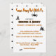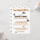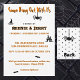 Ideal 'Download & Print' design with minimal colour on white background. All lettering has a distinctive orange or black outline. Edit any or all text to make it yours using the Template provided. This is a 5" x 7" two-sided card with white envelope. The back features black polka dots and large hanging spider. Printed in vibrant full colour on matte paper; semi-gloss and more papers are available. See "About This Product" at side for more information.