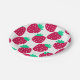 Cute Minimal Strawberry Pattern in Red and Green Paper Plate