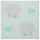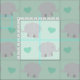 Custom fabric for baby features a grey elephant animal and neutral mint green heart pattern with soft mint background colour.