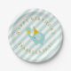 Adorable birthday party plates feature a cute illustration of an elephant on a stripes background and can be personalised with your child's name or message of your choice.
