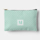 Cute Mint Green and White Polkadots Monogrammed Accessory Pouch