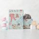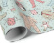 This cute personalised wrapping paper for Baby's First Christmas features a hand-drawn pattern of baby bodysuits, adorable winter stuffed animals (penguin, reindeer, teddy bear), bibs, bottles, pacifiers and xmas gifts, all against a soft mint green background with scattered cute little stars. Personalise with Baby's Name to make this wrapping paper uniquely yours!