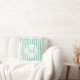 Cute Mint Green Painted Stripes Monogram and Name Cushion