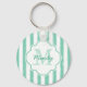 Cute Mint Green Painted Stripes Monogram and Name Key Ring
