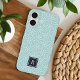 Trendy monogrammed phone case features a cool geometric pattern in pastel mint green and white with a pop of navy. Personalise with your single initial monogram in classic white lettering on a navy blue square at the bottom.