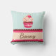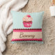 Cute Mint Pink Cupcake With Sprinkles Custom Name Cushion